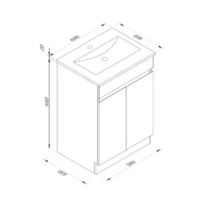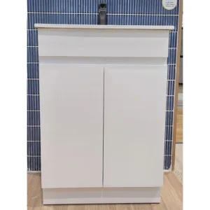 - 600mm White Gloss Floor Standing Unit With Plinth, Vitreous China Slimline Top