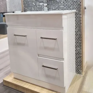 - 750mm White Gloss Floor Standing Vanity Unit With Plinth Vitreous China Slimline Top