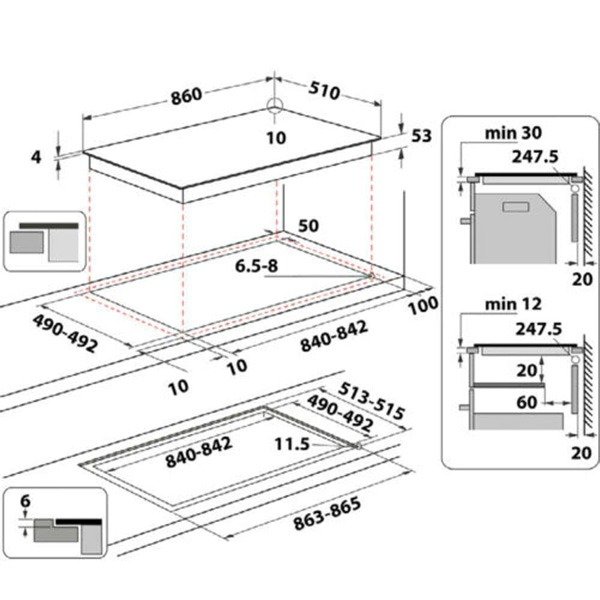 - Cut Out Dimensions (W*D): 84cm * 49cm