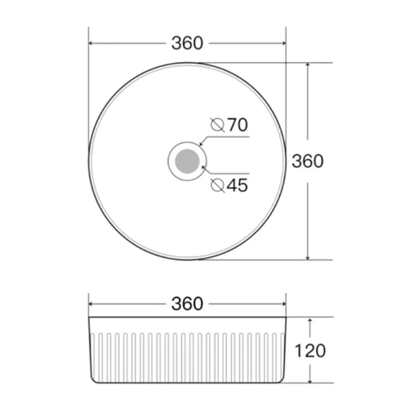 Art Basin Size: 400x400x110 (mm) Color: Fluted Round Glossy White