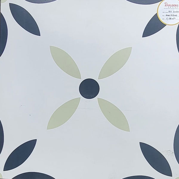 Matt Tiles – NH 6064 Color: Blue Flower Design Size: 600×600 (mm) SQM/CTN : 1.44 Pcs per box : 4