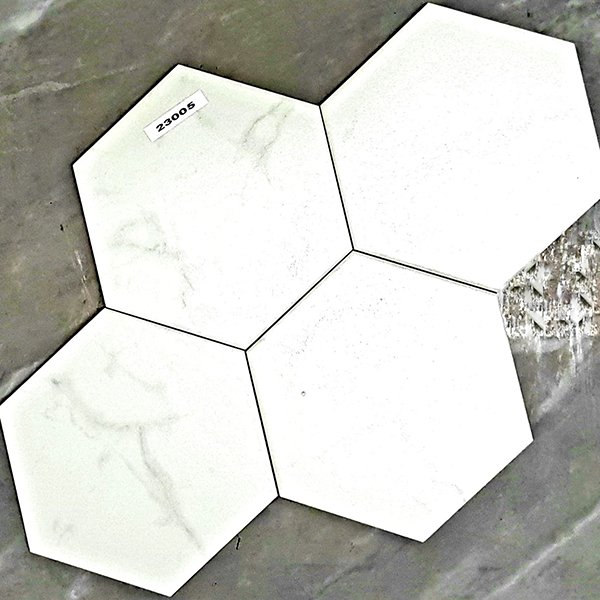 Highlighter Tiles – NH 23005 Color : cararra matte hexagonal tiles Size: 200x230x115 (mm) SQM/CTN : 0.69 Pcs per box : 20