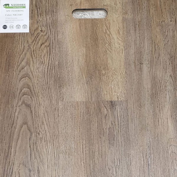 Hybrid Flooring – NH SPC 3107 Dark Brown Oak Size : 1218×180 (mm) Thickness : 6 (mm)+1.5 (mm) Boards per pack/ Sqm per box :06 pcs per box/ 1.3176sq per box AC Rating : AC4 Flooring System : Click