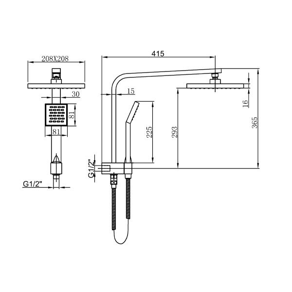 Square Twin Shower Set-Small Colour: Chrome, Matt Black Material: Brass Arm and ABS Shower Head
